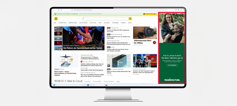 Manufactum setzte das aufmerksamkeitsstarke Werbeformat Sitebar mit einem Targeting auf Personen zwischen 25 und 59 Jahren mit besonderen Affinitäten zu Nachhaltigkeit, Haus & Garten sowie einem LOHAS-orientierten Lebensstil.