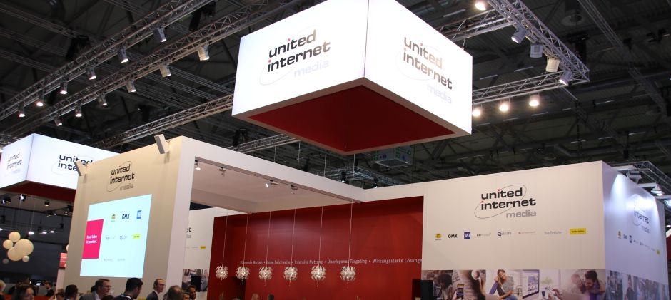 Der Stand von United Internet Media im Herzen der Halle Acht.