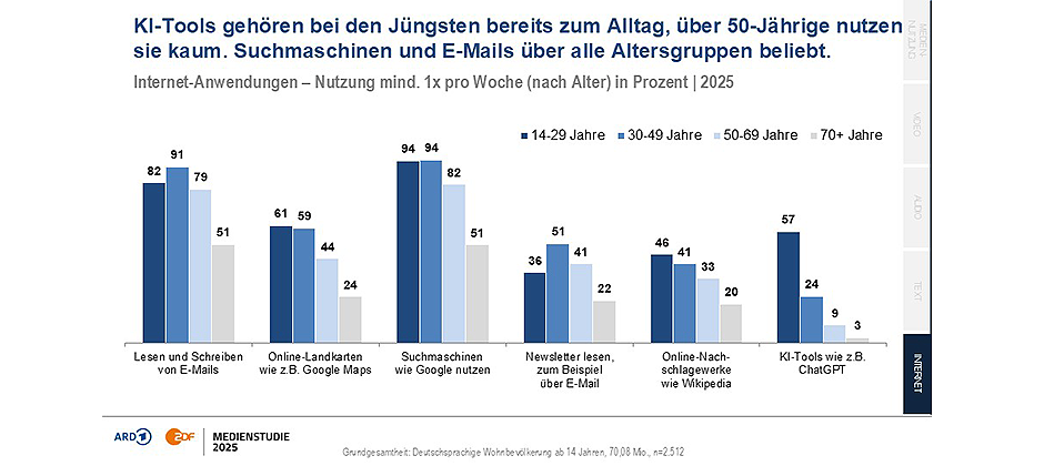 ARD/ZDF-Medienstudie 2025: E-Mail wächst weiter über alle Altersgruppen hinweg