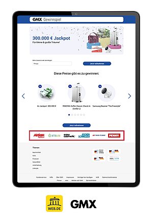 As a sponsor of the WEB.DE and GMX sweepstakes, you only generate leads with legally verifiable marketing opt-ins, allowing you to easily expand your newsletter customer base. Your brand appears exclusively in a trusted environment on our quality portals WEB.DE and GMX.